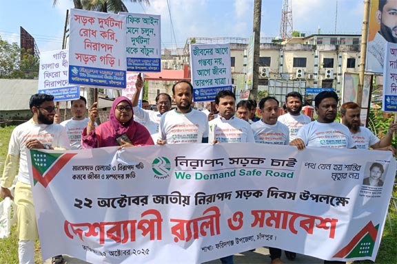 এদিকে জাতীয় নিরাপদ সড়ক দিবস ২০২৫ দিবস উপলক্ষে ফরিদগঞ্জ উপজেলা প্রশাসনের আয়োজনে র্যালি ও আলোচনা সভা অনুষ্ঠিত হয়েছে।