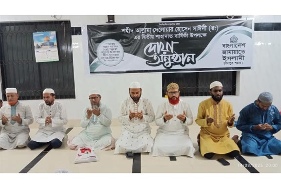 চাঁদপুর: শহীদ আল্লামা দেলোয়ার হোসেন সাঈদী (রহ.) এর দ্বিতীয় শাহাদাত বার্ষিকী উপলক্ষে চাঁদপুর শহর জামায়াতে ইসলামীর উদ্যোগে দোয়া ও আলোচনা সভা অনুষ্ঠিত হয়েছে।