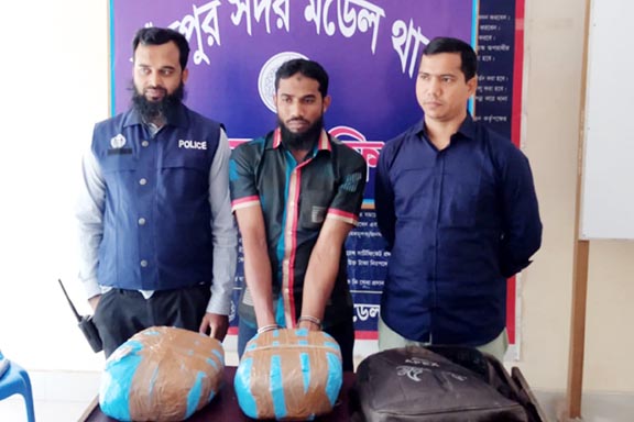 সদর মডেল থানার উপ-পরিদর্শক (এসআই) মো. আব্দুছ ছামাদ আজাদ জানান, ভোরে শহরের ওয়ারলেছ মোড়ের পুলিশ বক্সের সামনের পাকা রাস্তার ওপর মাদক অভিযান পরিচালনা করা হয়। এসময় আসামী মো. রেজাউল শেখের বহনকৃত কাঁধ ব্যাগ থেকে সে নিজ হাতে দুটি বান্ডিল এর প্রতিটিতে ২ কেজি করে মোট ৪ কেজি গাঁজা বের করে দেয়। যার আনুমানিক মূল্য ৮০ হাজার টাকা।