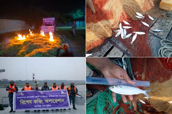 বুধবার (৭ ফেব্রুয়ারি) সকাল থেকে সন্ধ্যা পর্যন্ত পৃথক এই দুই অভিযান পরিচালিত হয়। জব্দকৃত জাল আগুনে পুড়িয়ে বিনষ্ট এবং জাটকা গরীব ও দুস্থদের মাঝে বিতরণ করা হয়।