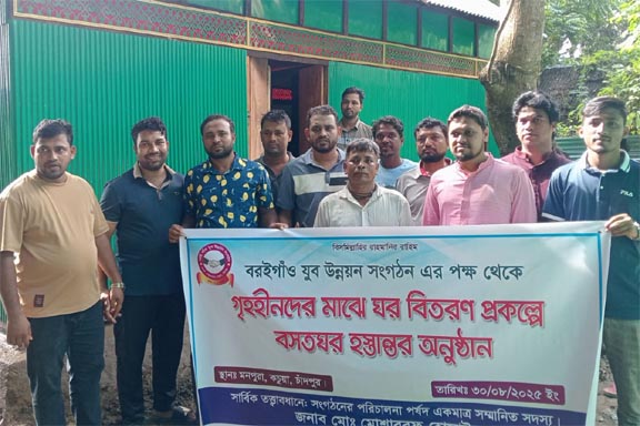 শনিবার (৩০ আগস্ট) বিকেলে ইউনিয়ন পরিষদের ভারপ্রাপ্ত চেয়ারম্যান মো. মোশাররফ হোসাইনের তত্ত্বাবধানে বরইগাঁও যুব উন্নয়ন সংগঠন এর পক্ষ থেকে গৃহহীনদের মাঝে ঘর বিতরণ প্রকল্পের অসহায় দুলাল চন্দ্র শীল কে ২কক্ষ বিশিষ্ট টিনশেড ঘর হস্তান্তর করেন, সংগঠনের সভাপতি, সমাজসেবক ও ব্যবসায়ী মোঃ আব্দুল কাহার মজুমদার ও সাধারণ সম্পাদক রবিউল আলম।