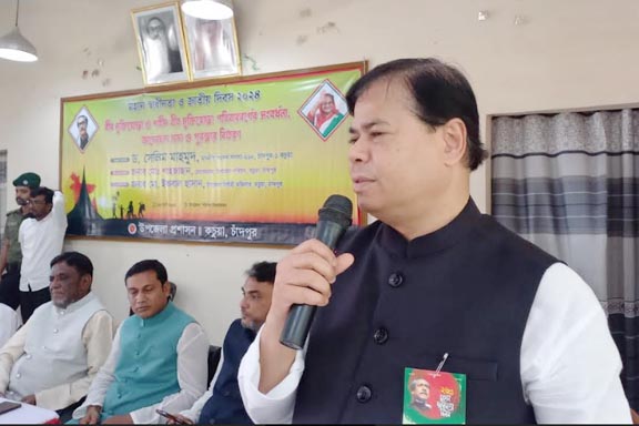 মঙ্গলবার (২৬ মার্চ) দুপুরে মহান স্বাধীনতা ও জাতীয় দিবস উপলক্ষে চাঁদপুরের কচুয়া উপজেলা প্রশাসন কর্তৃক আয়োজিত বীর মুক্তিযোদ্ধা ও শহীদ বীর মুক্তিযোদ্ধা পরিবারবর্গের সংবর্ধনা, আলোচনা সভা ও পুরস্কার বিতরণ অনুষ্ঠানে প্রধান অতিথির বক্তব্যে এসব কথা বলেন।