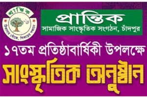 চাঁদপুর: প্রান্তিক সামাজিক ও সাংস্কৃতিক সংগঠন’-এর গৌরবময় ১৭তম প্রতিষ্ঠাবার্ষিকী উপলক্ষে জমকালো সাংস্কৃতিক অনুষ্ঠান, আলোচনা সভা এবং গুণীজন সংবর্ধনার আয়োজন করা হয়েছে।