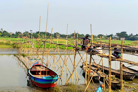 বুধবার (১৮ ডিসেম্বর) সরজমিনে বন্দুকশী বাজারে গিয়ে দেখা যায়, বিশাল এই সাঁকোটির মাঝের অংশ নদীতে ভেঙে পড়েছে। ১০-১২ জন শ্রমিক বাঁশের সাঁকোটি মেরামতে কাজ করছেন। সাঁকো ভেঙ যাওয়ায়, পাশেই ডিঙি নৌকা দিয়ে খাল পাড়ি দিচ্ছে শিশু, নারী, বৃদ্ধাসহ অসংখ্য মানুষ।