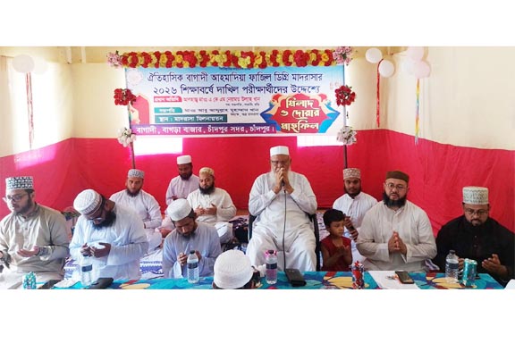 চাঁদপুর: চাঁদপুর সদর উপজেলার বাগাদী আহমাদিয়া ফাজিল (ডিগ্রি) মাদ্রাসার ২০২৬ সালের দাখিল (এস এস সি) পরিক্ষার্থীদের মিলাদ ও দোয়া বৃহস্পতিবার (১৬ এপ্রিল ) সকাল ১০ টায় মাদ্রাসা মিলনায়তনে অনুষ্ঠিত হয়েছে।