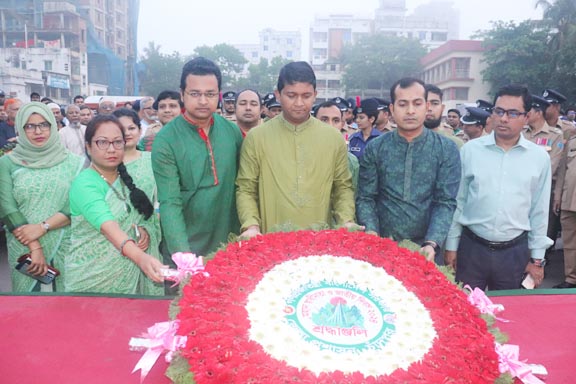 পরে শহীদ মুক্তিযোদ্ধা সড়কে মুক্তিযুদ্ধের স্মৃতি স্তম্ভ ‘অঙ্গীকার’ পাদদেশে মহান স্বাধীনতা যুদ্ধে শহীদ ও বীর মুক্তিযোদ্ধাদের গভীর শ্রদ্ধা জানিয়ে পুষ্পস্তবক অর্পণ করা হয়।