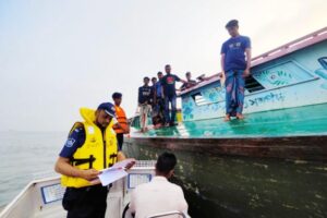 চাঁদপুর: চাঁদপুর মেঘনা নদীর বিভিন্ন পয়েন্টে অভিযান পরিচালনা করে বাল্কহেডের কাগজপত্র যাচাই করে সার্ভে সনদ ঝুলিয়ে না রাখাসহ রেজিষ্ট্রেশন নম্বর প্রকাশ্যে স্থানে উৎকীরন ও সুকানি যোগ্যতা সনদ না থাকায় ৯ জন সুকানি এবং শ্রমিককে আটক করা হয়েছে।