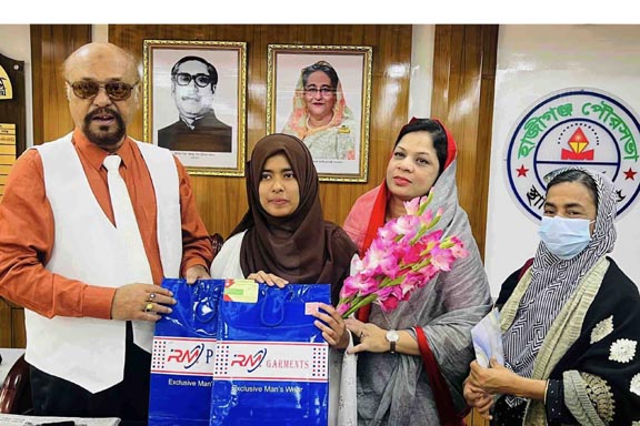 বুধবার (১৪ ফেব্রুয়ারী) বেলা ১১টায় পৌরসভায় কার্যালয়ে তাজমীম রহমান তাজরীকে ফুলেল শুভেচ্ছার মাধ্যমে স্বাগত জানান, পৌর মেয়র আ.স.ম মাহবুব-উল আলম লিপন ও তাঁর সহধর্মীনি আইরিন আলম। এসময় তাজরী মাকেও ফুলেল শুভেচ্ছা প্রদান করা হয়। পরে তাজরীর হাতে নগদ ৫০ হাজার টাকা তুলে দেন মেয়রের সহধর্মীনি আইরিন আলম এবং উপহার সামগ্রী তুলে দেন, পৌর মেয়র।