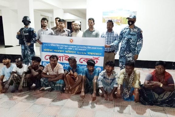 মেঘনায় নিষেধাজ্ঞা অমান্য করে মাছ ধরায় ৯ জেলের কারাদন্ড