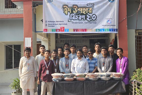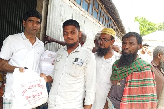 হাজীগঞ্জে অস্বচ্ছল মানুষের মাঝে বনফুল সংঘের ঈদ সামগ্রী বিতরণ